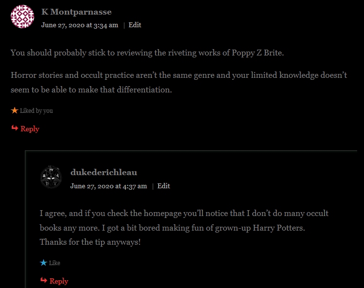 A few years back, I wrote a fairly critical review of a book of Vampiric black magic. Somebody, probably the author, made fun of me for it by saying I should stick to Poppy Z. Brite books. I am happy to take this very good advice. Poppy Z. Brite books are awesome.